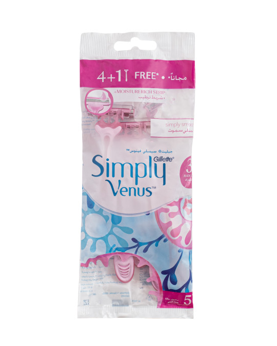 خودتراش ژیلت ونوس سیمپلی زنانه دولبه 5 عددی